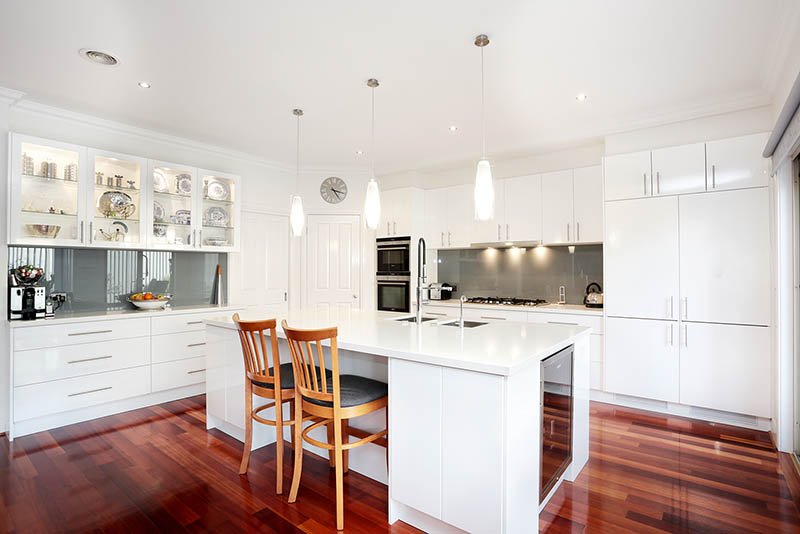 Executive Living at its best, This well appointed Huge home comprises of : 4 Bedrooms, Master with large bath ensuite, parents retreat and walk in Robes upstairs, all bedrooms have built-in-robes, upstairs retreat provides a third living area with private balcony, State of the art Kitchen with stainless steel appliances, dishwasher, Caesar Stone benches and integrated refrigerator opening onto rear paved entertainment area, large family area, separate spacious lounge dining area, office with Built in shelving, Powder room, ducted heating & evaporative cooling upstairs & split Systems downstairs, Hardwood polished floorboards, Double remote garage with internal access plus additional single carport with roller door from garage.